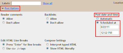 Did you know you can schedule your blog posts in blogger? I didn't know about this feature and just discovered it. This feature allows you to schedule your blog posts to appear on the specific time and date. It will be helpful for you if you want to write different posts and want them to get published automatically on specified time. Here is how to do it: